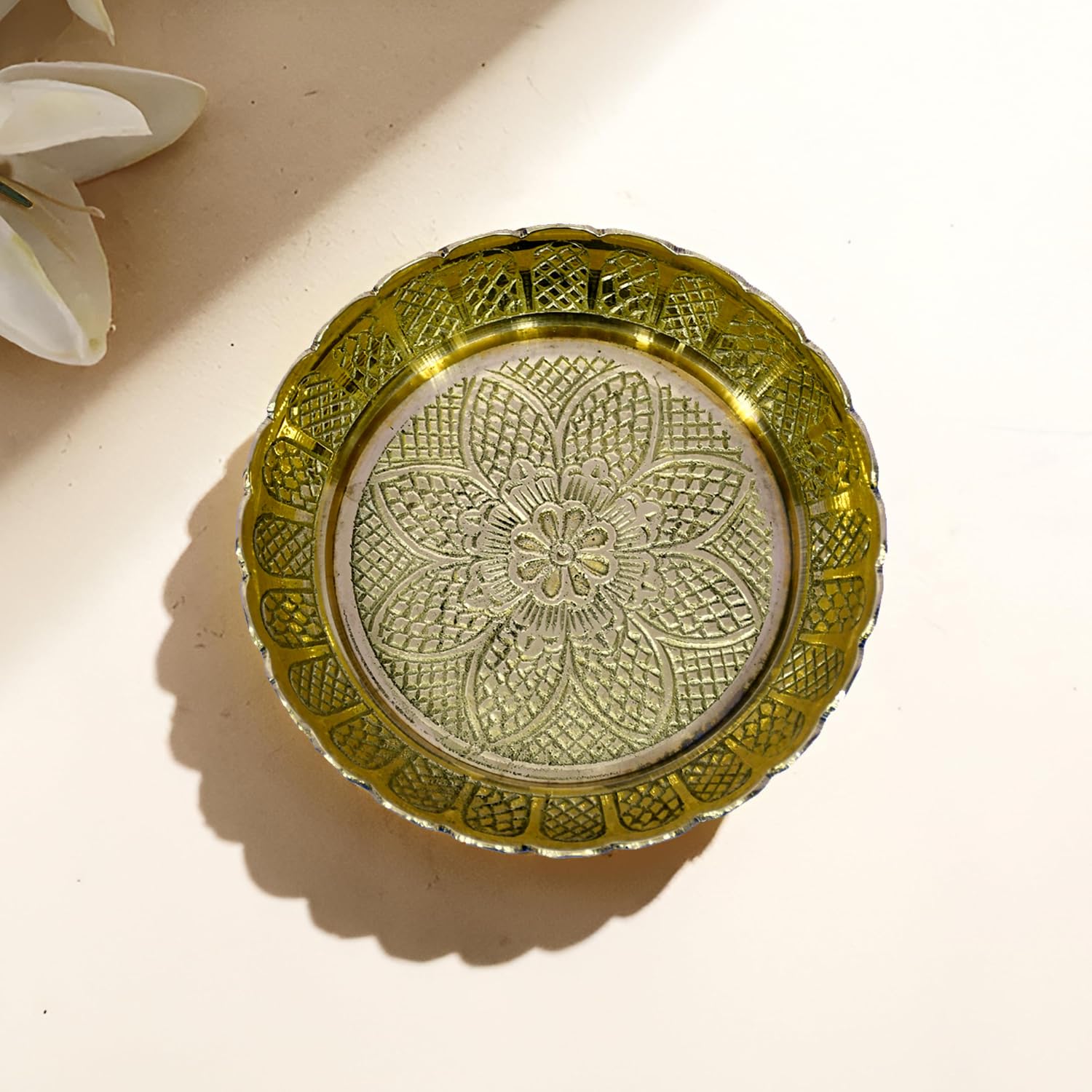 ESPLANADE Brass Plate for Puja Engraved, Set of 2 Bhog Thali Brass Items for Pooja & Kitchen, Prasadam Bowls for Pooja, Diwali Gift Items, Puja Essentials for Home Mandir