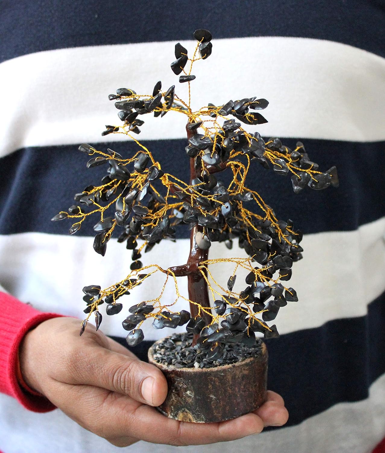 - Black tree has 300 Natural Beads. Size approx. 8-10 Inches Golden Wire (Branches Need Bending & Shaping to Your Desired Look)
