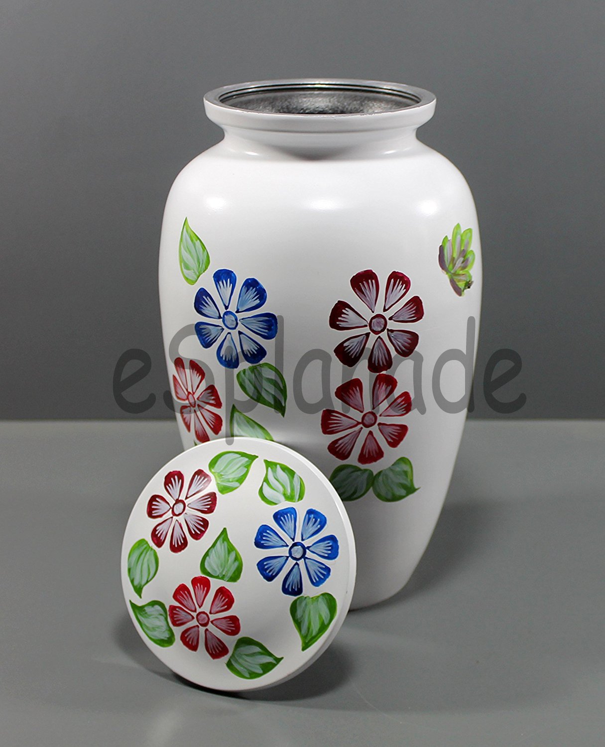 eSplanade Metal Cremation Urn Memorial Jar Pot Container | Full Size Urn for Funeral Ashes Burial | Flowers Printed Urn | Blue, Brown, Multicolor - 10" Inches