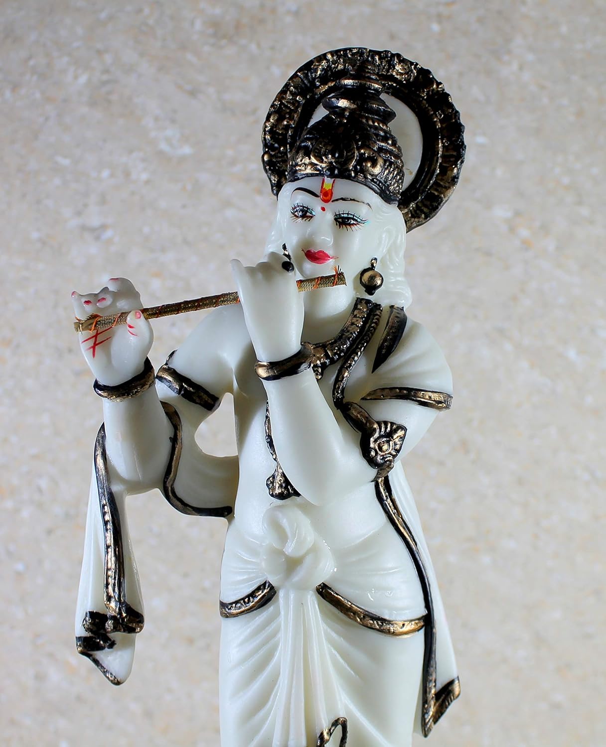 - Elegant Krishna Idol: Beautifully crafted 16.5-inch statue of Lord Krishna in a white and golden finish.