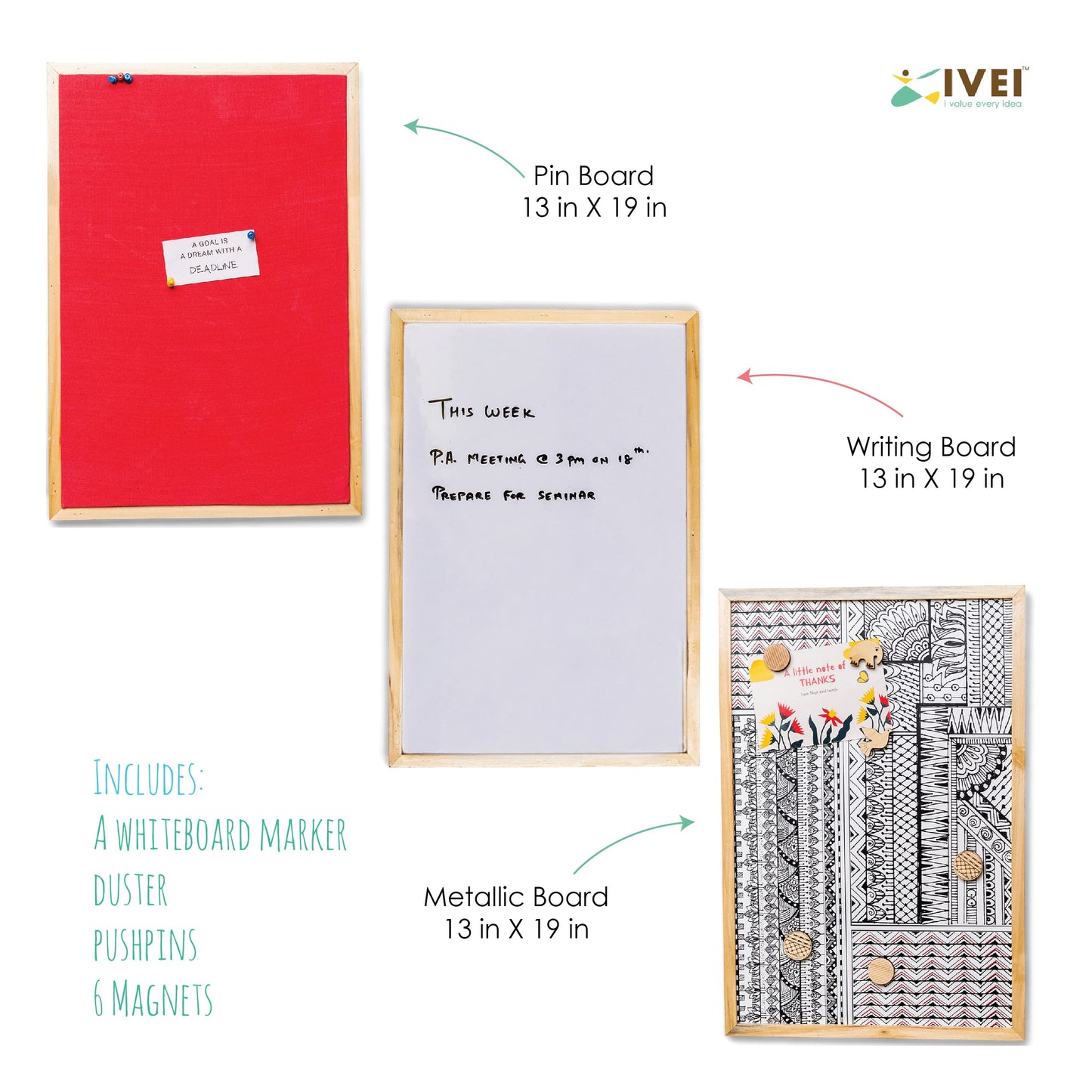 IVEI Combination Board with Magnet Board, Pin Board & Whiteboard- Set of 3- Dark Blue -Innovative Organizer for Kids and Adults with Magnets- To Do Boards - Best Gift for Home, Office, School- (Big) Blue, Pink,Orange