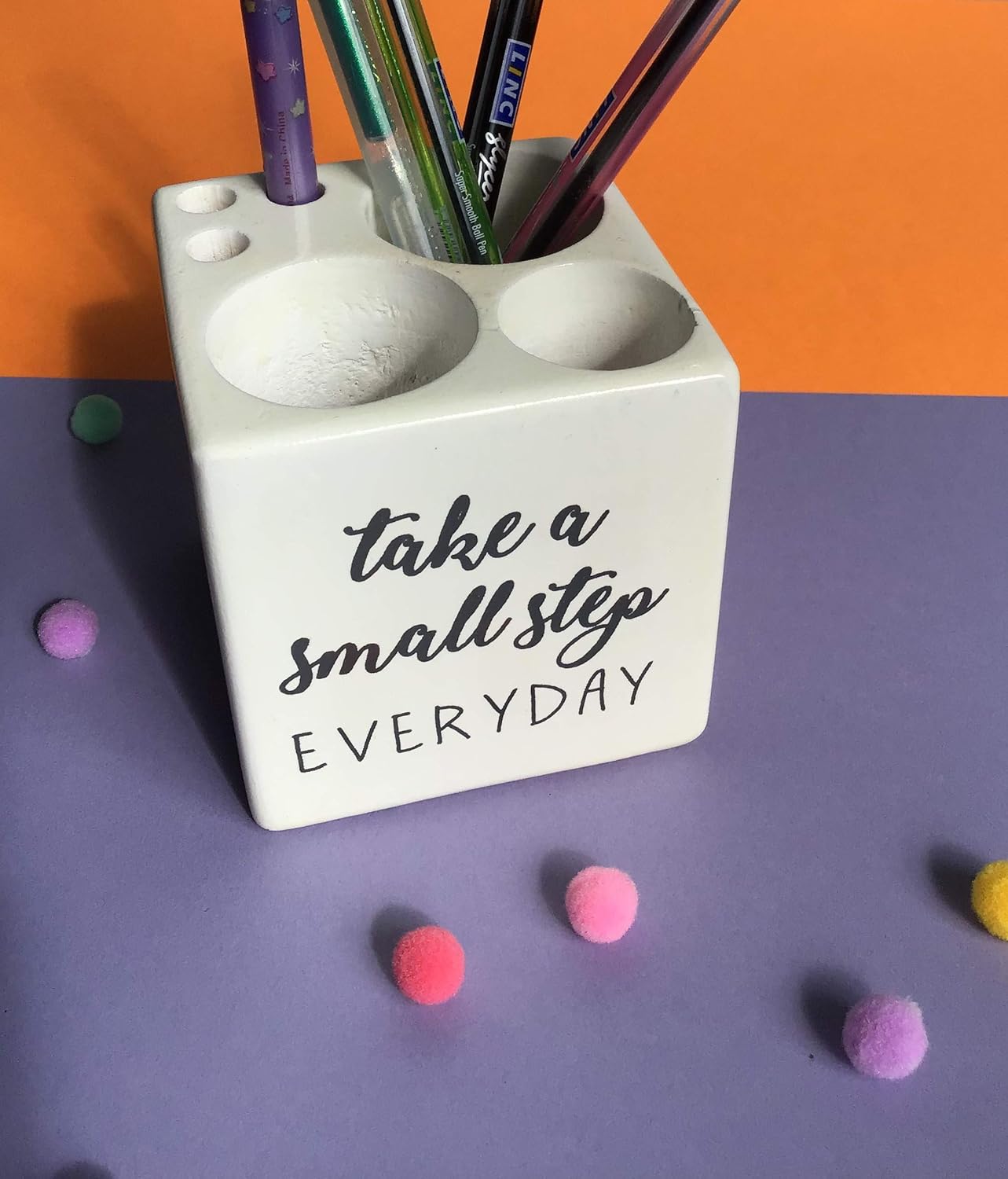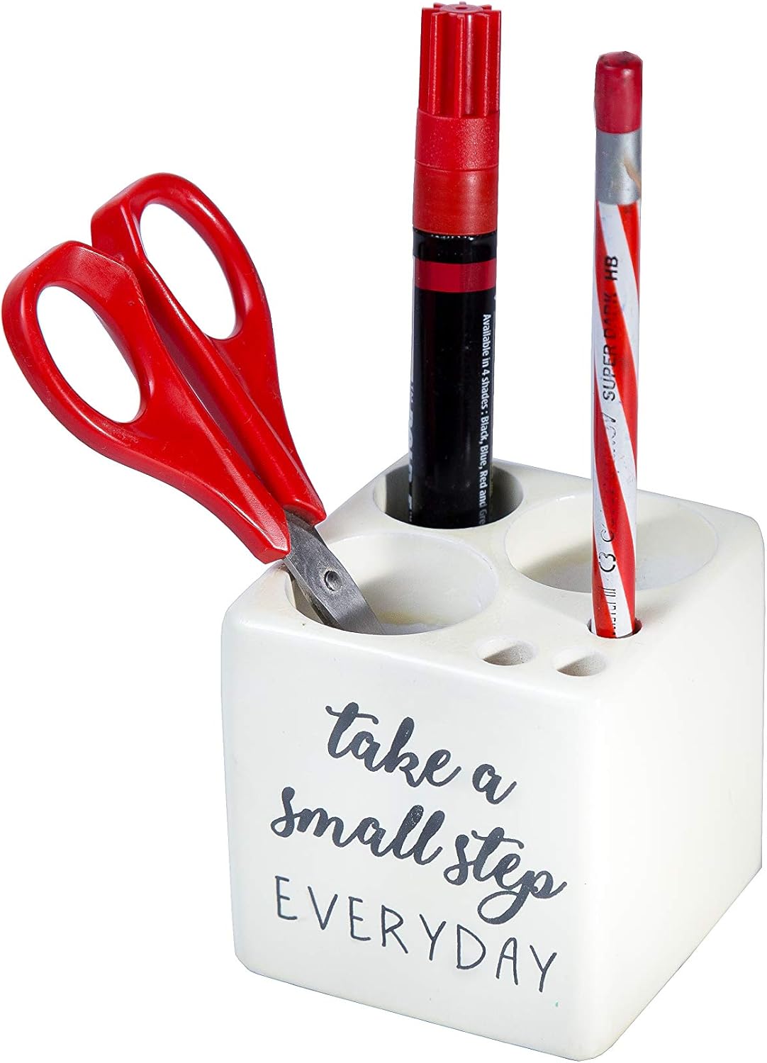 - PACKAGE CONTENTS: Cube pen stand, wood, White Penstand DIMENSIONS - 2.75 in X 2.75 in X 4 in.