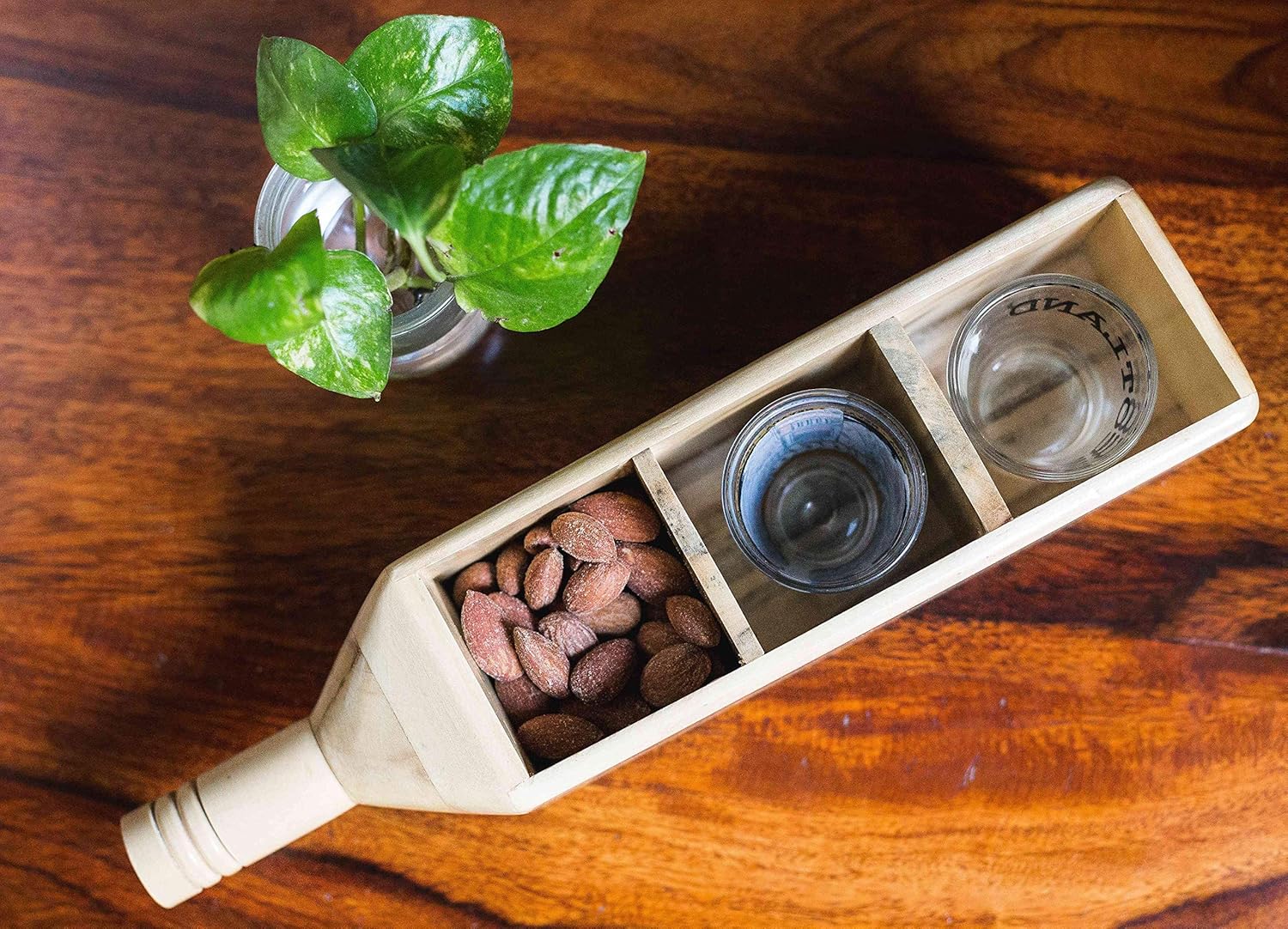 IVEI Wooden Shot Glass Holder - Handcrafted Wooden Bottle-Shaped Shots Glass Holder Tray/Stationery Holder - Wooden Holder for Tequila - 3 Shot Glass Serving Set - Innovative Desk Organizer