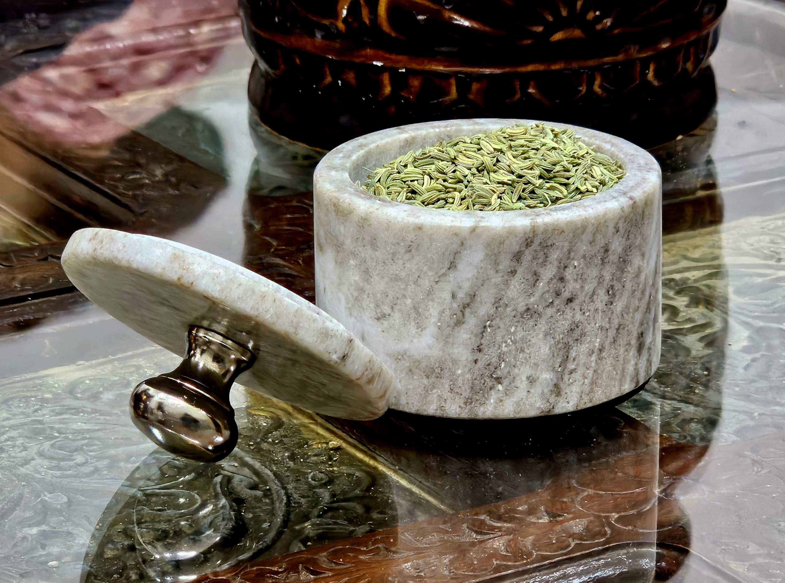 - Multipurpose small box: Kleo Handmade Marble Holder can be used to store spices in the kitchen, salt in on the dining table or other refreshments at dinner. This small stone canister/marble Martaban is an elegant edition to your kitchen.